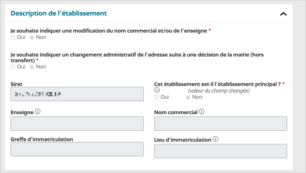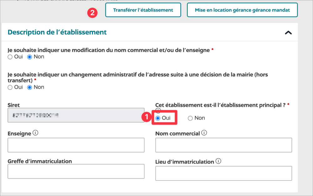 - Vérifie que la case « Oui » est cochée à la question : « Cet établissement est-il l’établissement principal ? »