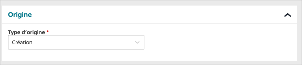 - Dans la liste de « Type d’origine », sélectionne « Création ».