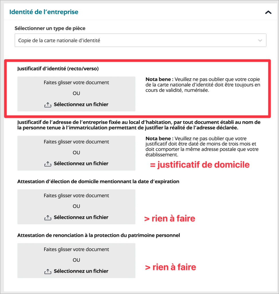 ℹ️ Si tu passes par une société de domiciliation, dépose l’attestation de domiciliation fournie par cette société.