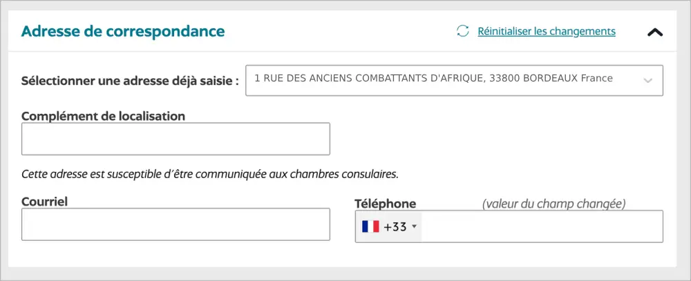 Voilà, ta demande de modification d’adresse a bien été envoyée au CFE compétent (CMA, CCI ou URSSAF).