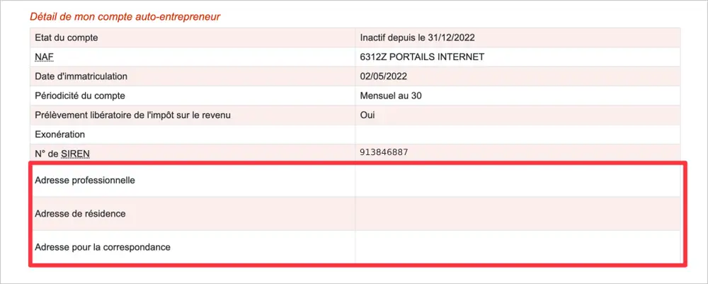 - Vérifie que c’est bien l’ancienne adresse de ta micro-entreprise (avant déménagement) qui est indiquée.