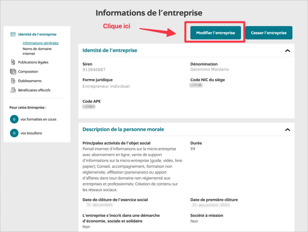 - Clique sur « Modifier l’entreprise ».
