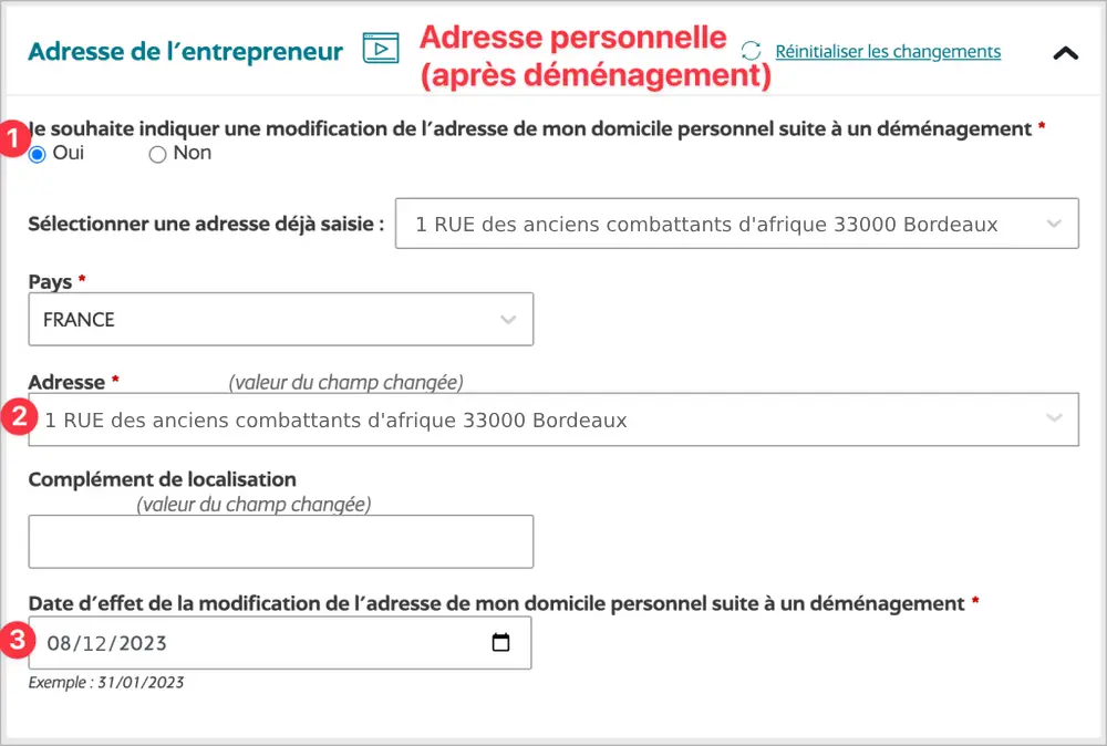 - Indique la date d’effet de ce changement d’adresse.